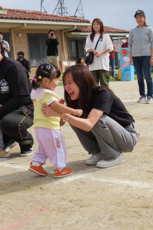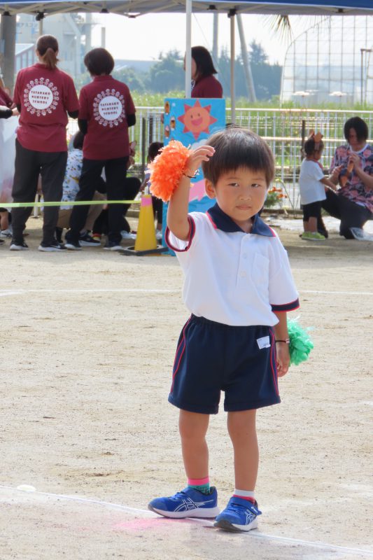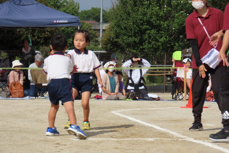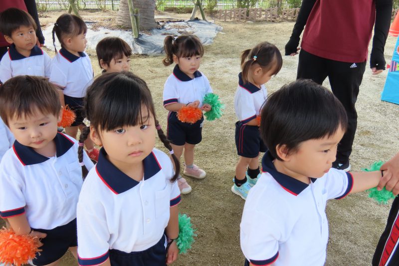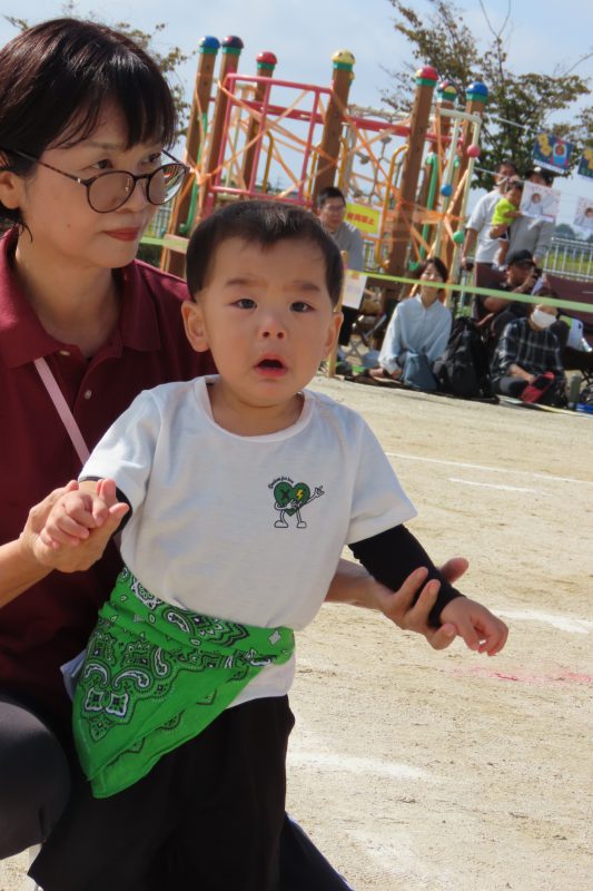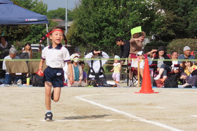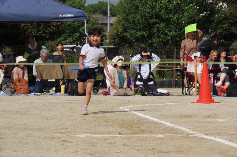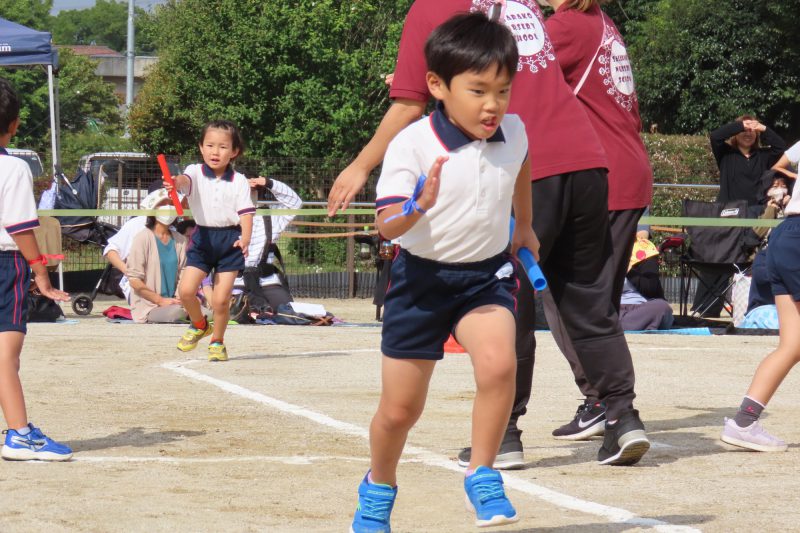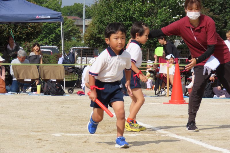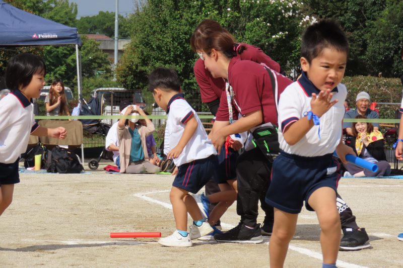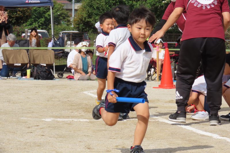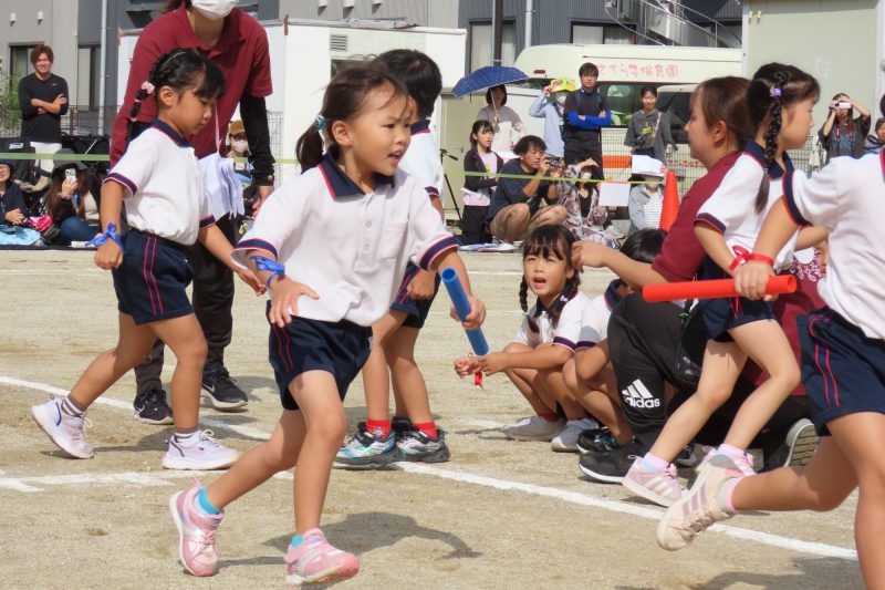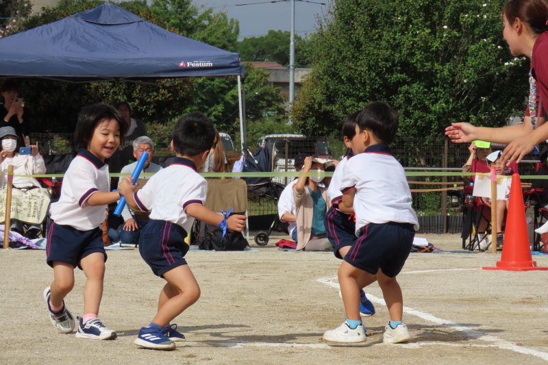 ぱんだ・ぞう組のリレー。子どもたちが一生懸命バトンを渡します✨