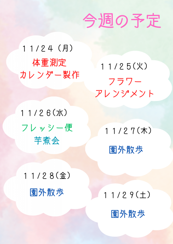 ●大泉園 11月も駆け抜けます≪デイ≫ 今年最後の三連休 いかがお過ごしでしょうか?? 今週も寒さに負けず 過ごしていきましょう(^▽^)/ Instagram始めました🌟 日々の様子を更新中です! ぜひ、チェックしてください🎵 デイサービスの見学・無料体験は随時受け付けております。 希望される方は直接お電話か、担当ケアマネージャーへ お気軽にお問い合わせください。 大泉園デイサービスセンター 0276-62-8835 2025年11月24日(月) 11:37 カテゴリー:新着情報,その他,行事報告,デイサービス シェア Tweet こんにちは😊 デイ 介護体験を行いました😊 一覧へ戻る ブログ一覧へ