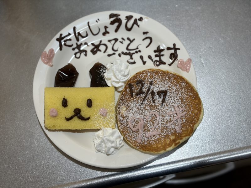 可愛くデコレーションした特製デザートでお祝いしました🥞