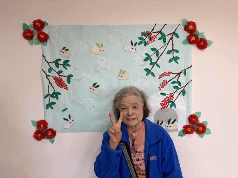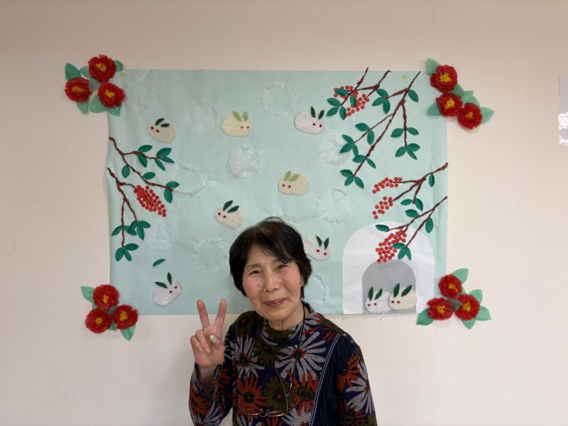 色紙を使って利用者の皆様と一緒に 椿の花の制作 を行いました✨
