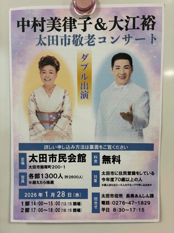 ●ケアハウスたかちほ 太田市敬老コンサート 太田市敬老コンサート抽選に当たって行ってきました ロビーにて 早めについて記念に一枚 4階席まで満員御礼 楽しかった 2026年1月28日(水) 04:39 カテゴリー:活動風景 シェア Tweet 手作りお昼~おきりこみ~ 一覧へ戻る ブログ一覧へ