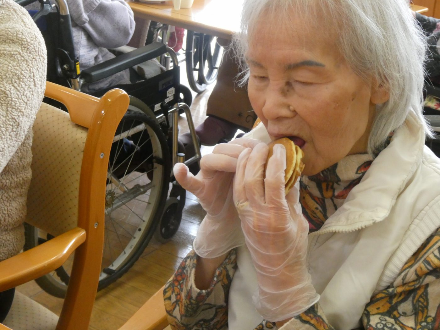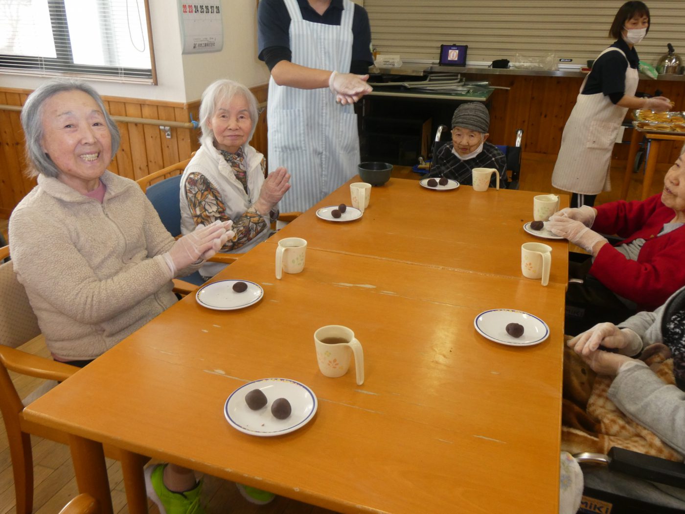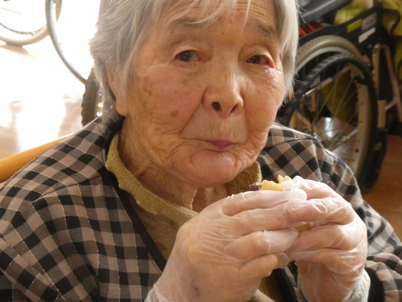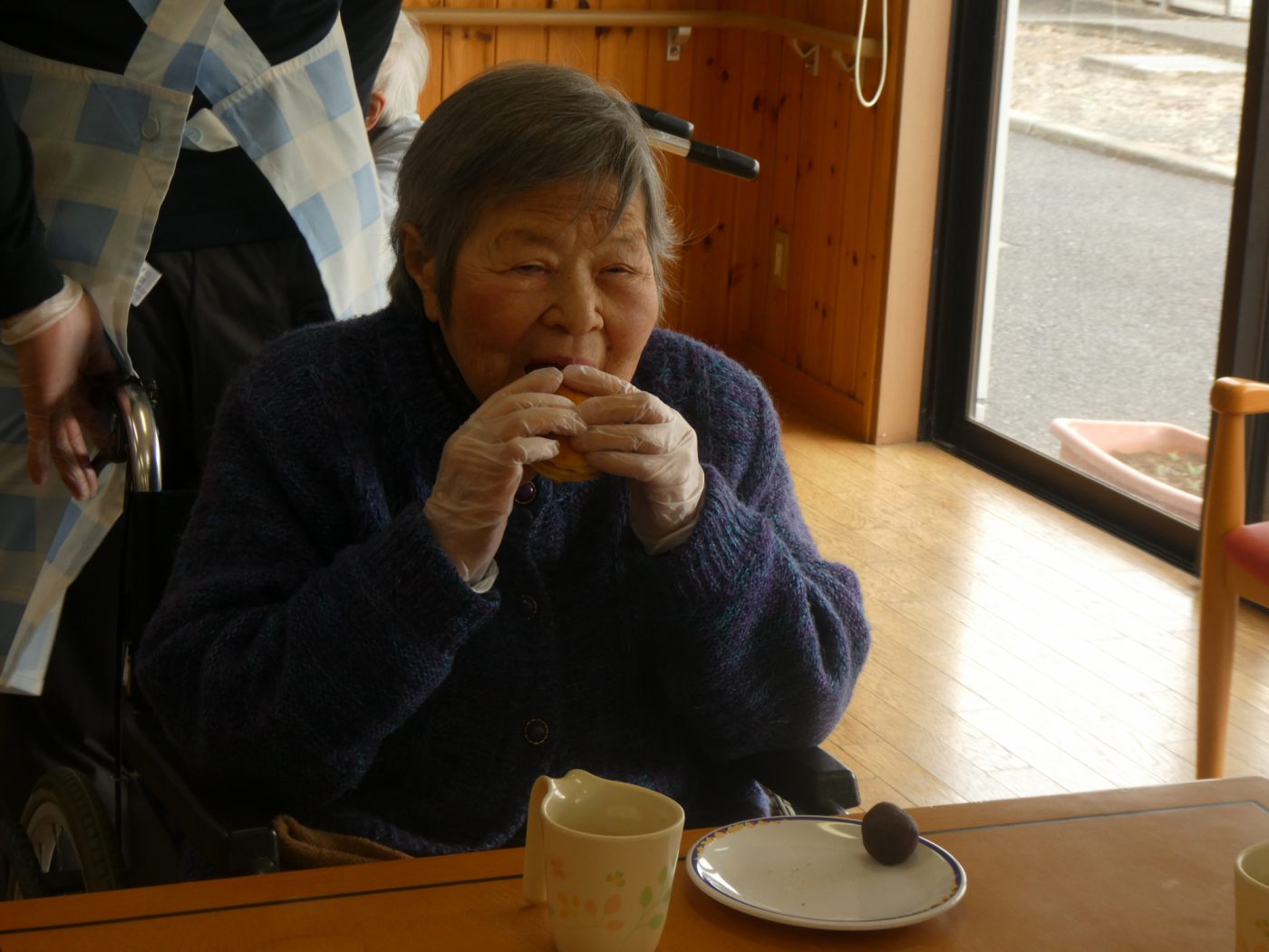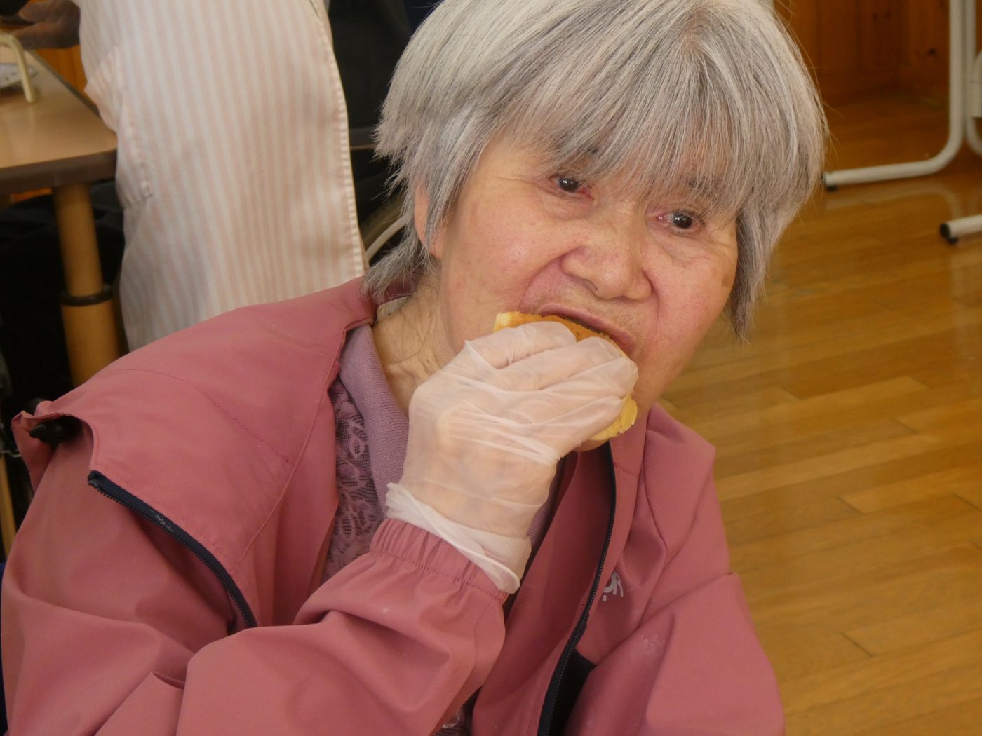 作り終わったら、みんなで食べました。「おいしい」と笑顔になり、ある利用者は昔話をしていただきました。