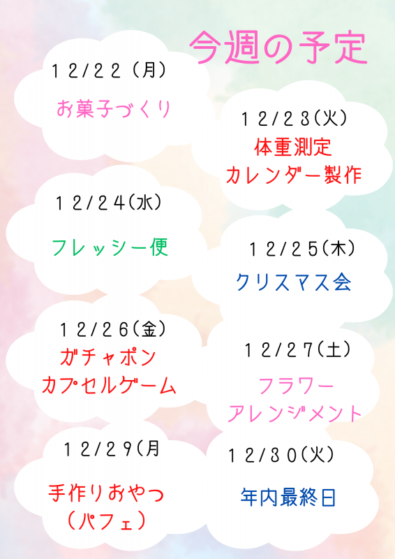 今週はクリスマスなどの楽しい行事がたくさんあります