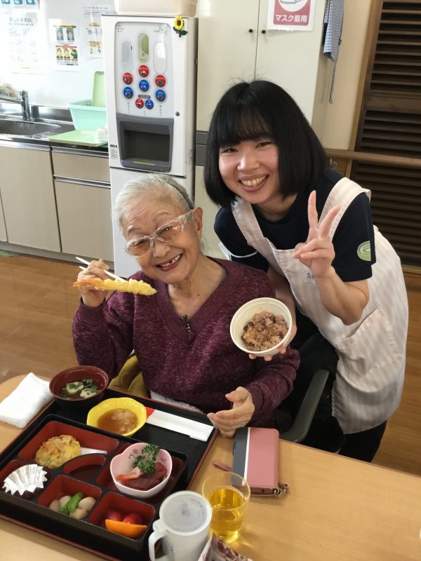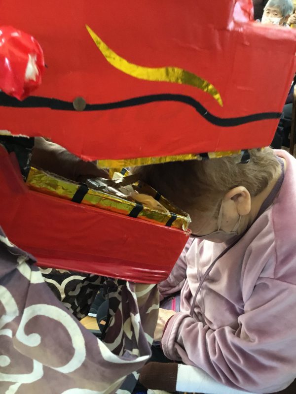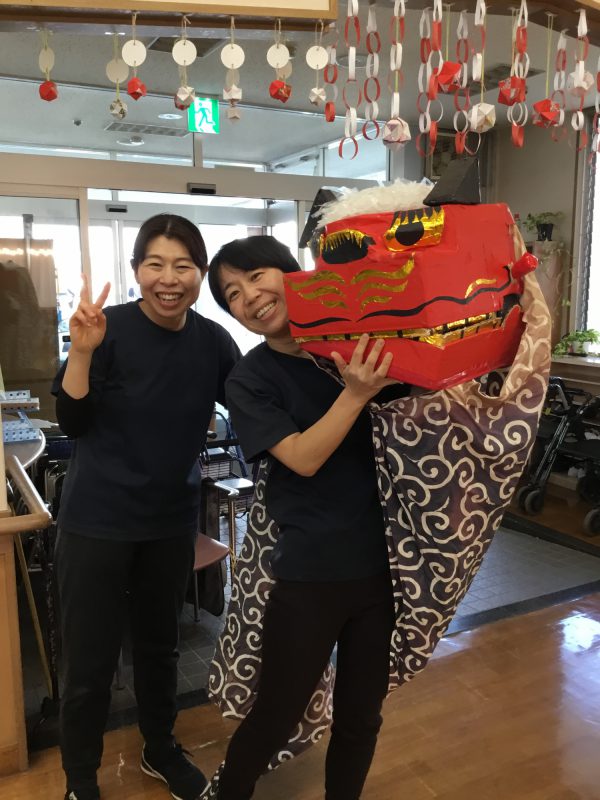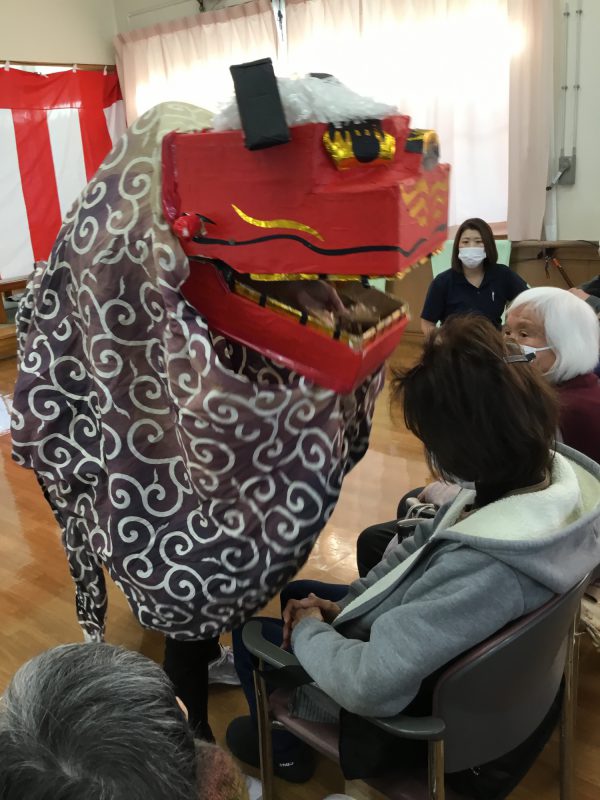 美味しい昼食あり、獅子舞あり、職員の余興ありで