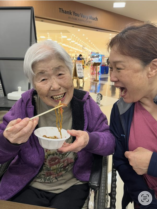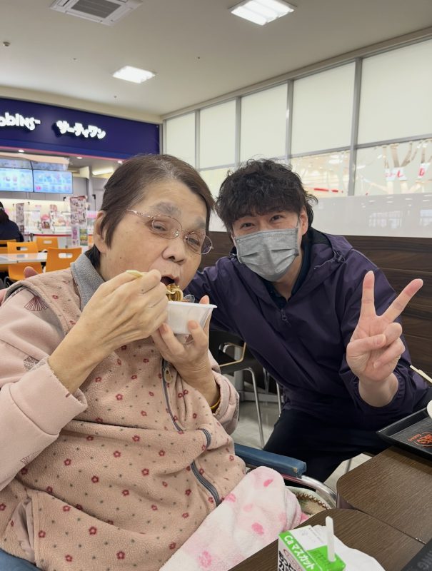 フードコートで焼きそばや、たこ焼き、フライドポテトを食べたりして