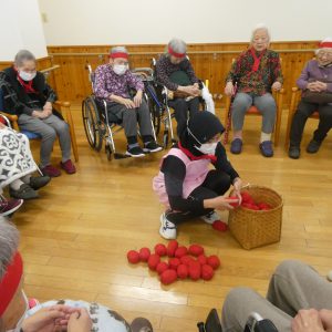ラジオ体操後、輪っか渡し、玉入れを行いました~