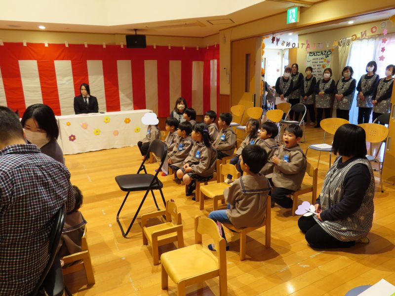 そして、在園児として新ぞう組さんが参加しお祝いの言葉と歌、お花のプレゼントをしてくれました♪